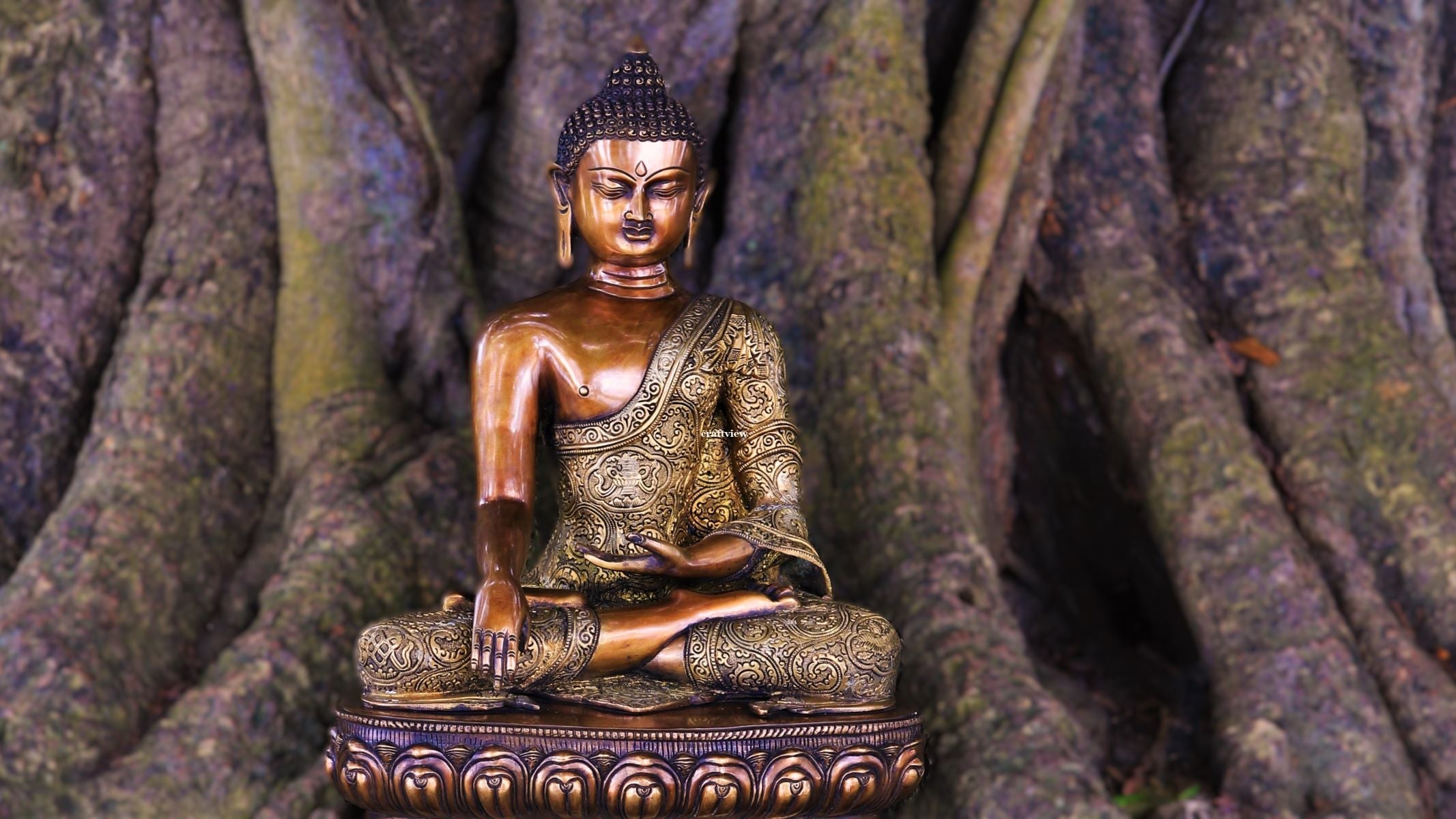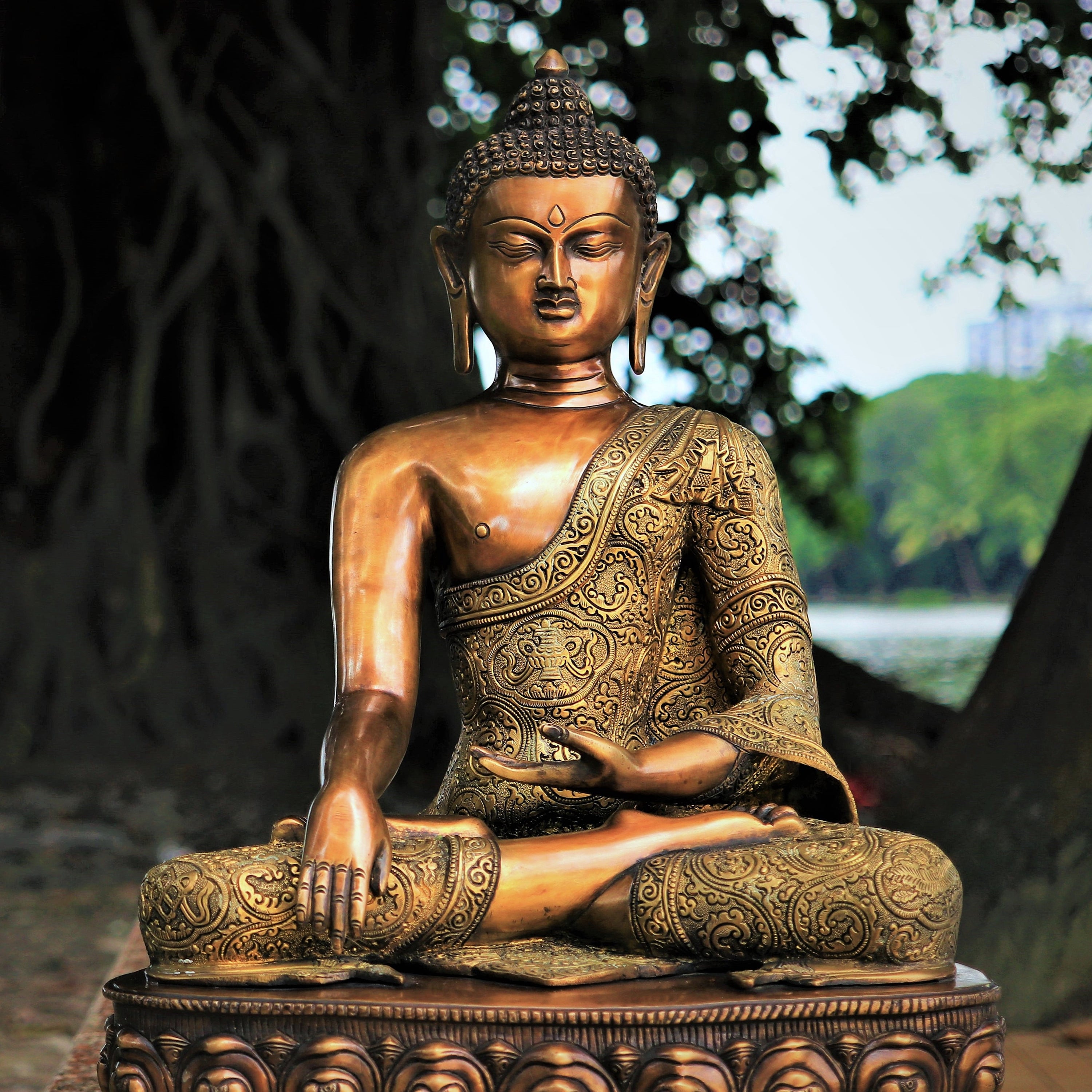 Brass Blessing Buddha With Bodhi Tree Background 30"