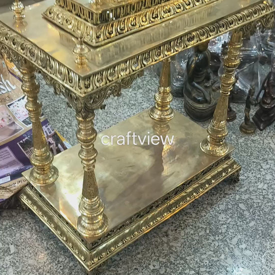 A unique bronze temple with beautifully handcrafted pillars is a truly stunning piece of art and craftsmanship. Such temples often combine intricate detailing, spiritual significance, and a high level of artistry. The bronze material gives the structure a warm, antique look, with a sense of reverence and durability. These temples are commonly used in places of worship or as decorative focal points in homes or gardens, adding both beauty and a sacred energy to the space.