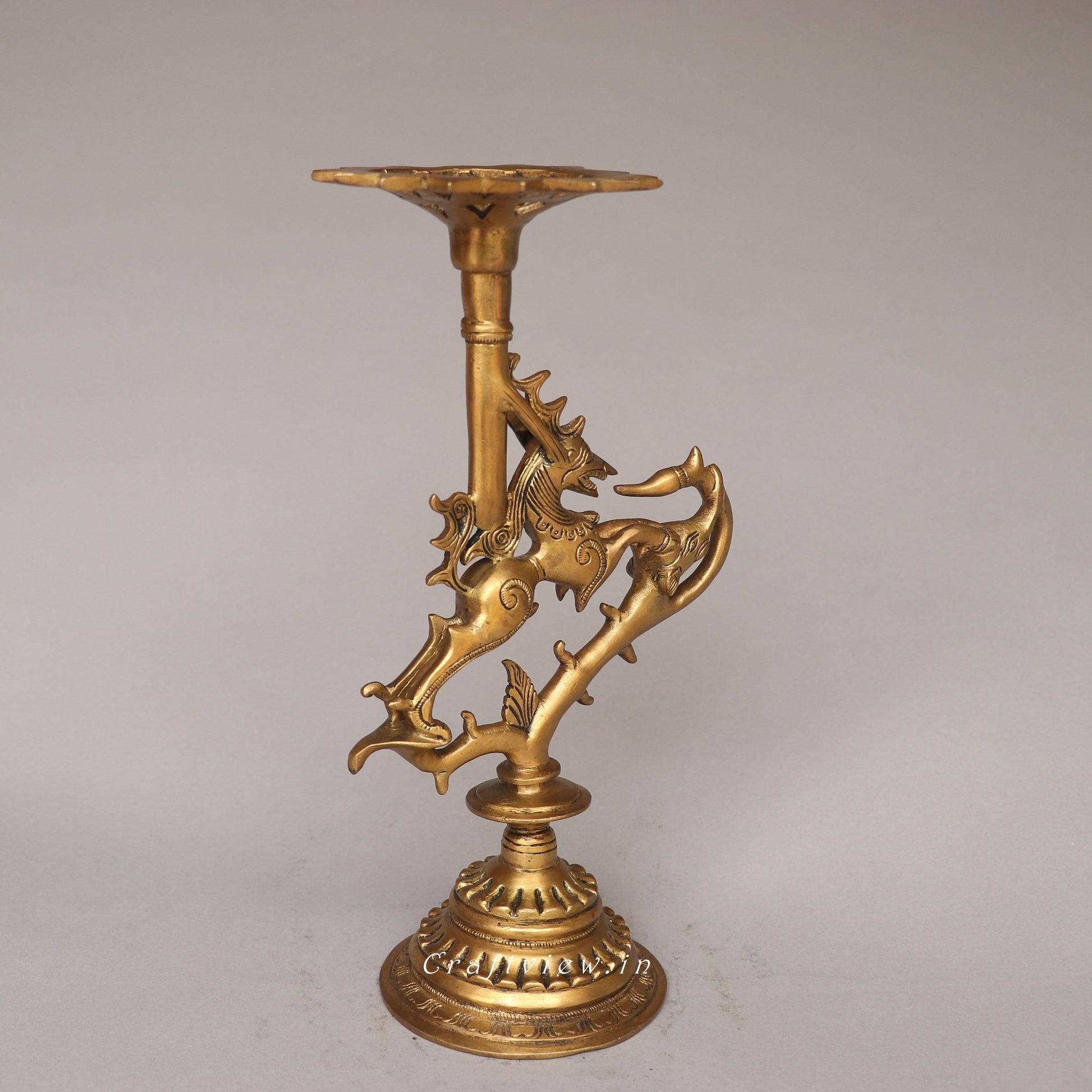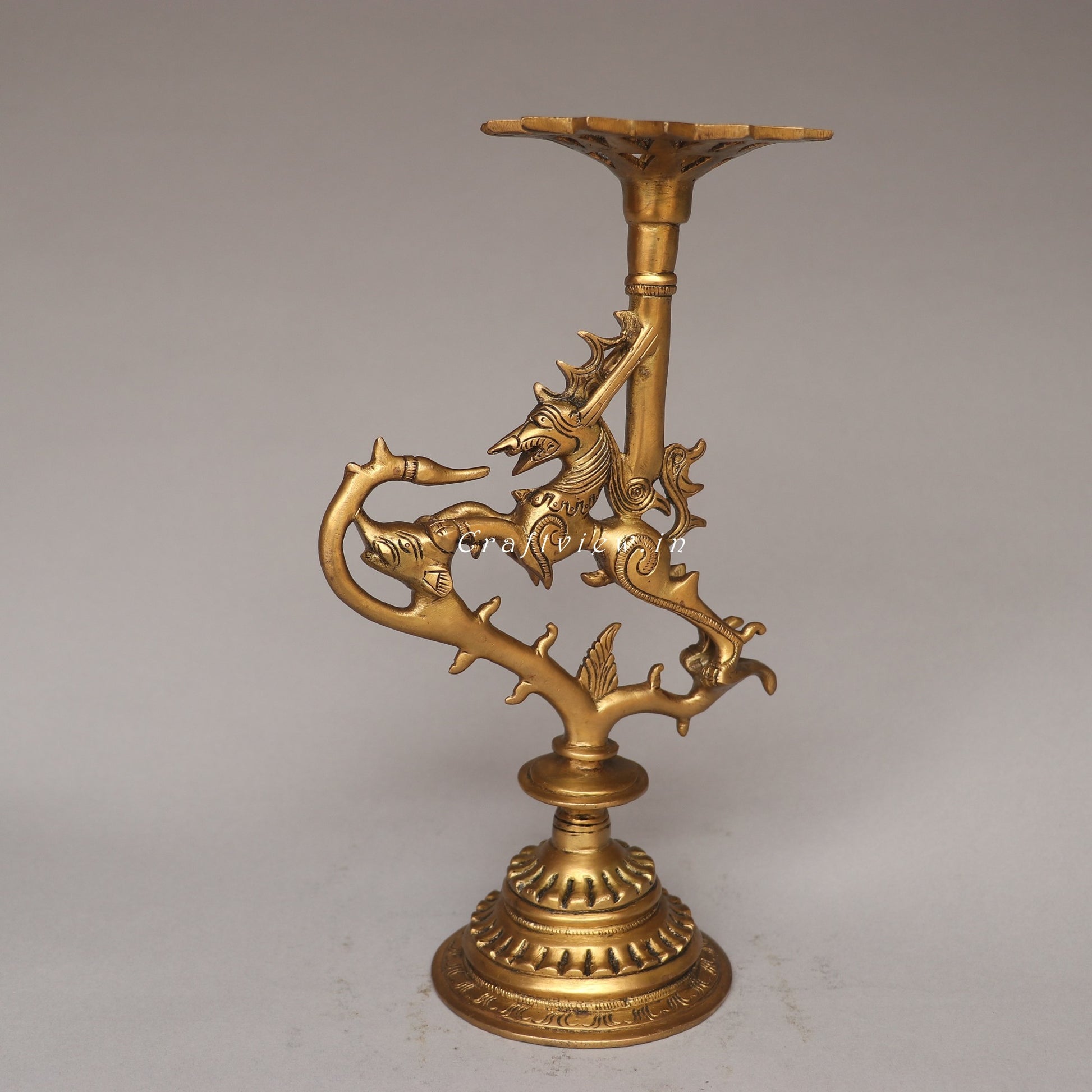 Experience Elegance with the Brass Vyala Offering Candle Stand