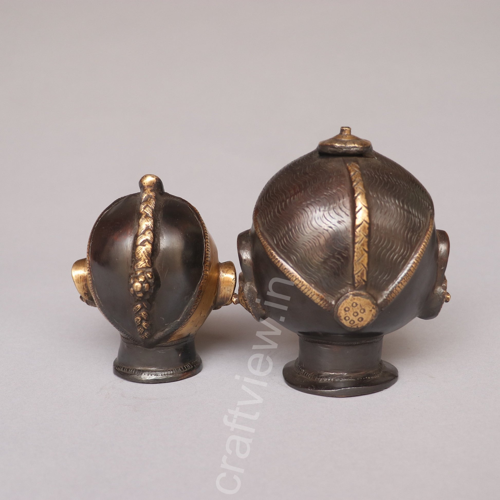 Brass Shiva Gauri Decorative Head is a beautiful sculpture that features the heads of Lord Shiva and Gauri (Parvati), crafted from brass. These heads are often intricately designed to capture the divine and serene expressions of the deities, representing the harmonious union of masculine and feminine energies in Hindu mythology. Shiva, known as the god of transformation and destruction, and Gauri, his consort and goddess of love, fertility, and devotion, are often depicted together, symbolizing balance and completeness.