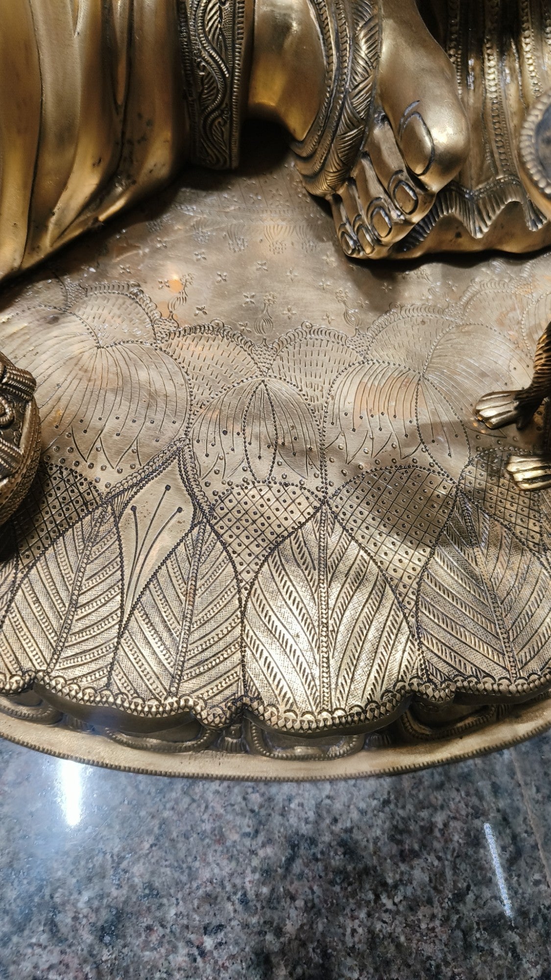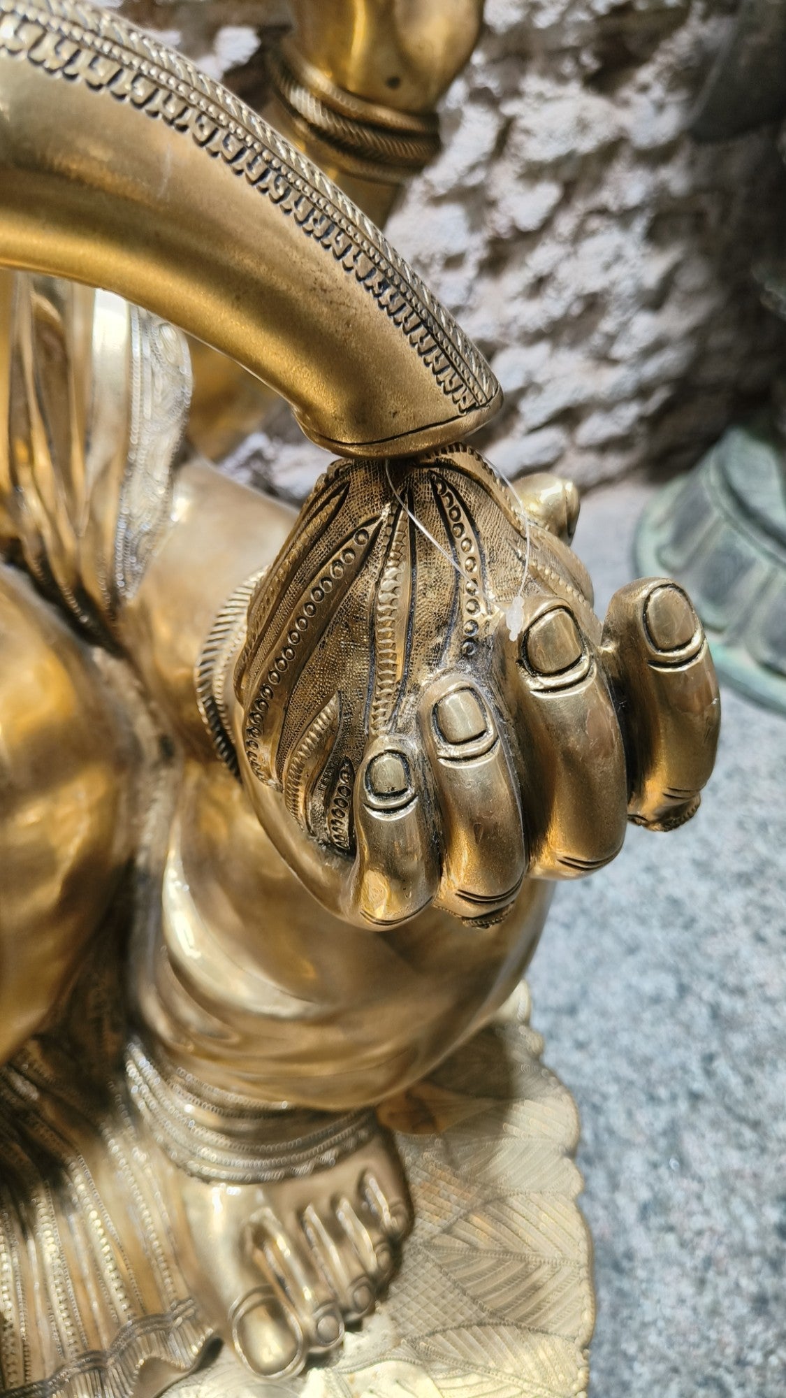 A brass Largest Ganesha statue seated on a Carving Lotus base is a beautiful and meaningful representation of Lord Ganesha, the remover of obstacles, the deity of wisdom, and the patron of new beginnings. The lotus base is a significant symbol in Hinduism, representing purity, spiritual growth, and the blossoming of wisdom. By placing Lord Ganesha on a lotus, the statue emphasizes his connection to the divine and his ability to bring clarity, purity, and wisdom into one's life