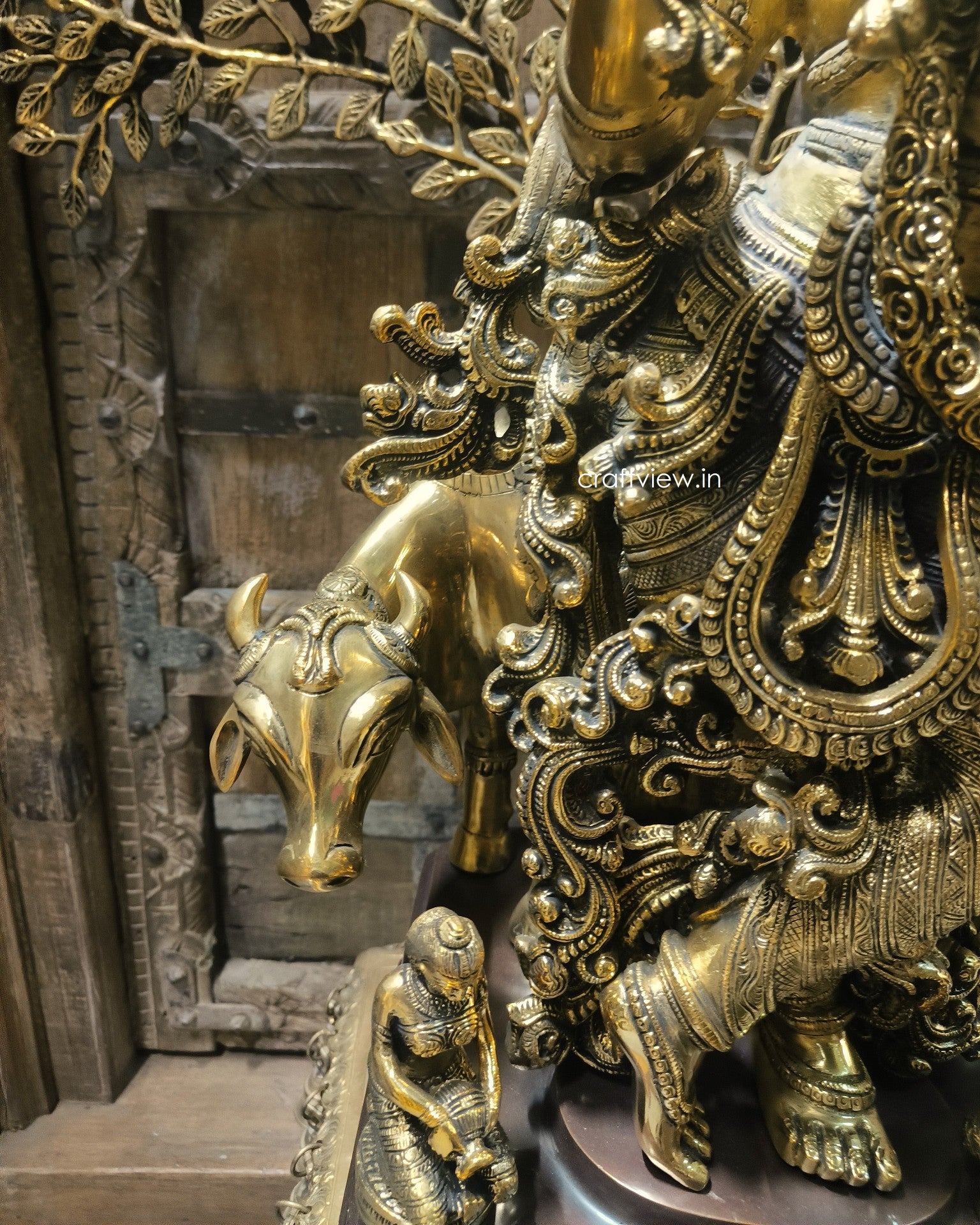 Whether you're looking to enhance your living room or create a serene meditation corner, this Krishna statue fits perfectly into any setting. And because it includes a tree motif, it adds an extra layer of symbolism and elegance. Because of its versatility, it works well in both traditional and modern homes, making it a timeless piece of décor.