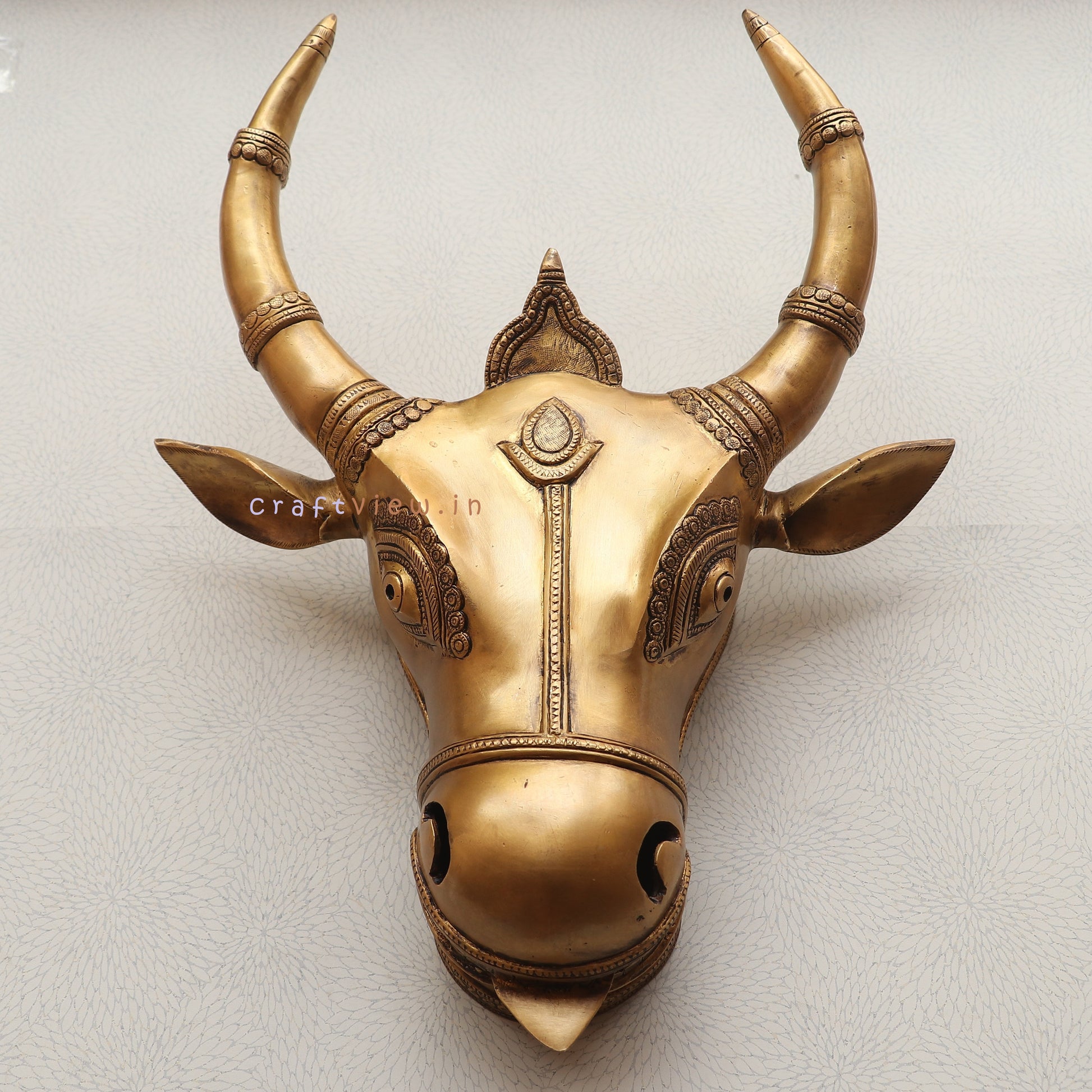 Sacred Elegance: Brass Nandi Bull Wall Hanging Mask for Divine Décor