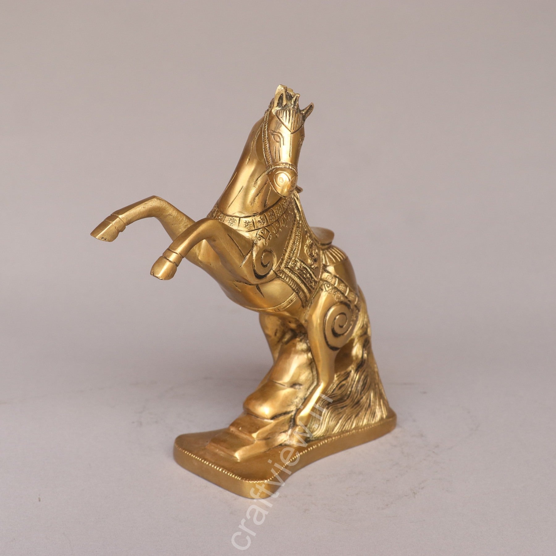 The rearing horse figurine crafted in solid brass is a powerful symbol of victory, strength, and progress. In Feng Shui, the horse represents speed, perseverance, and success, making it an ideal piece to attract positive energy and good fortune into your space.