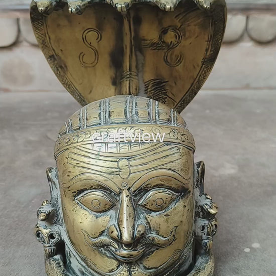Brass Shiva Mukhlinga with five headed serpent , Nagabharanam .