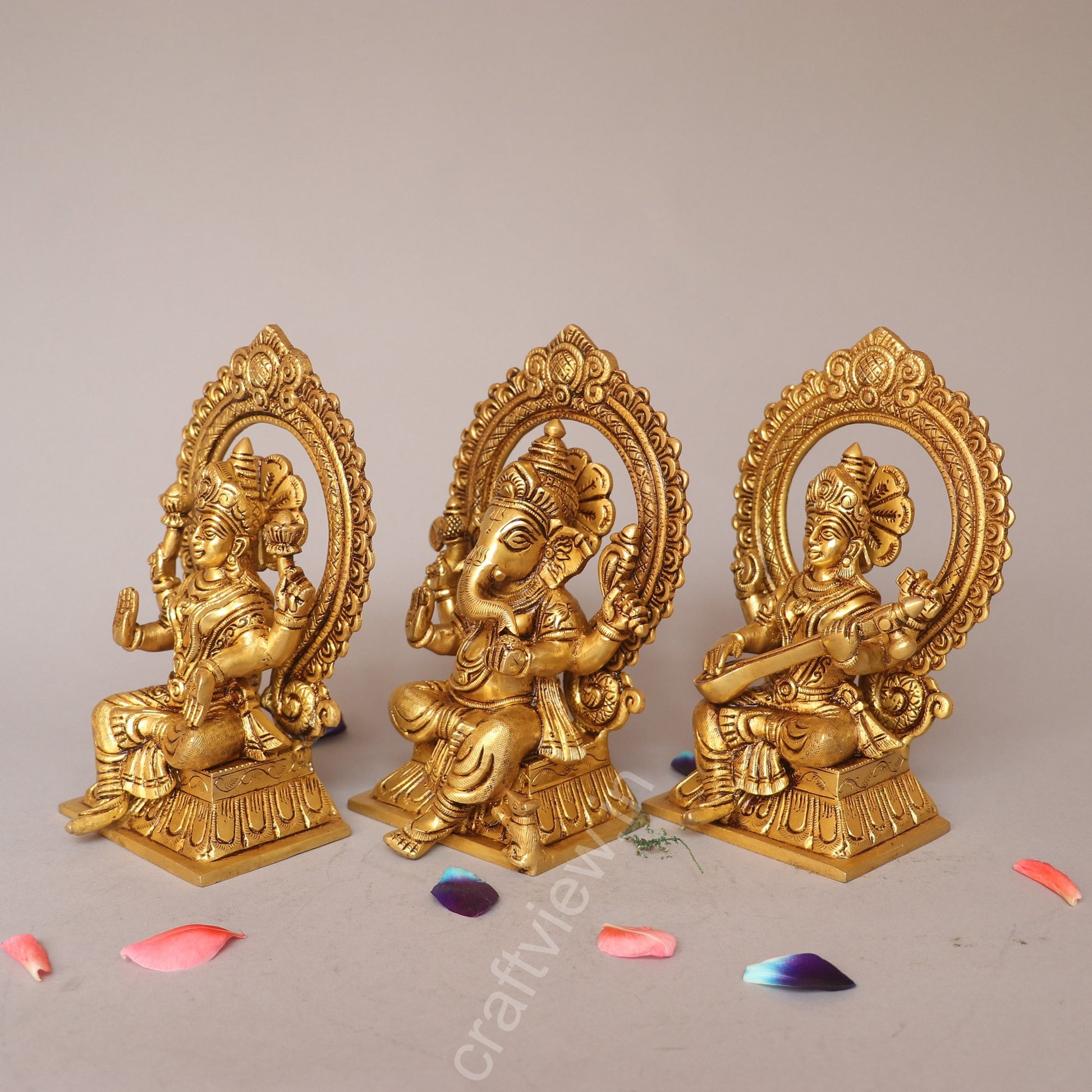 Ganesh Lakshmi Sarasvati: The Divine Trio in Superfine Brass